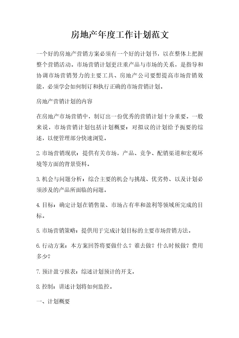 房地产年度工作计划范文