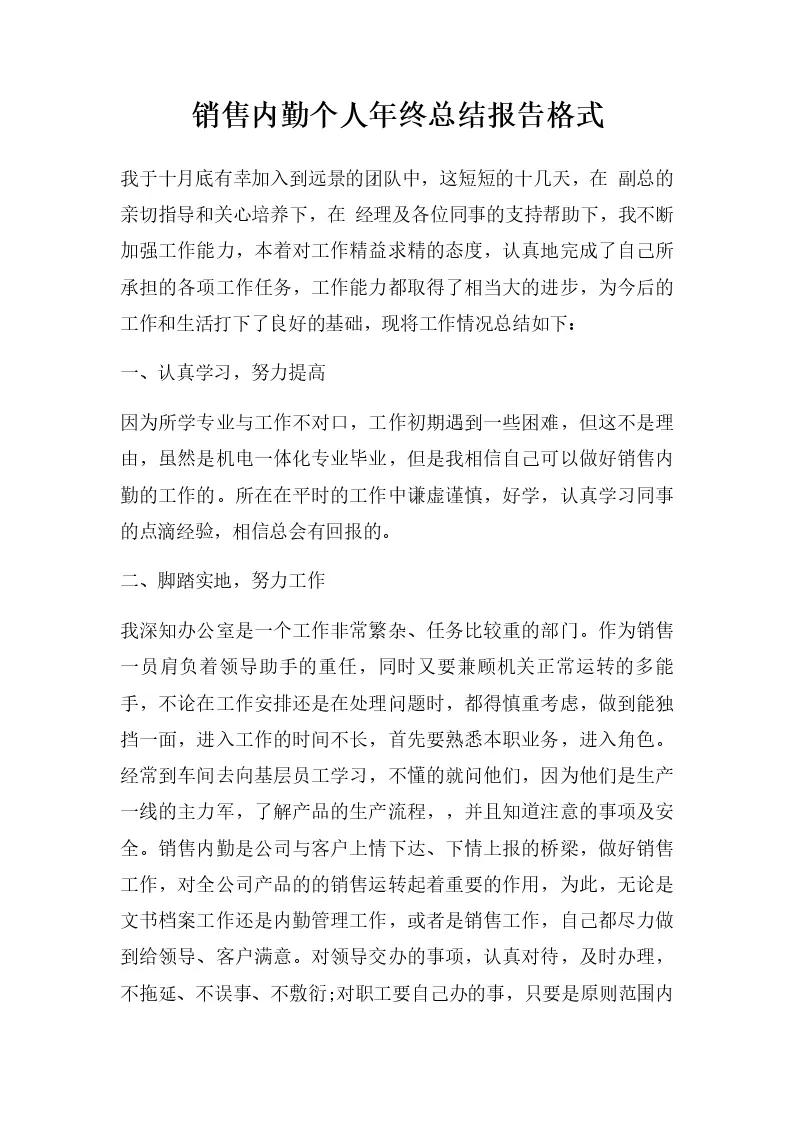 销售内勤个人年终总结报告格式