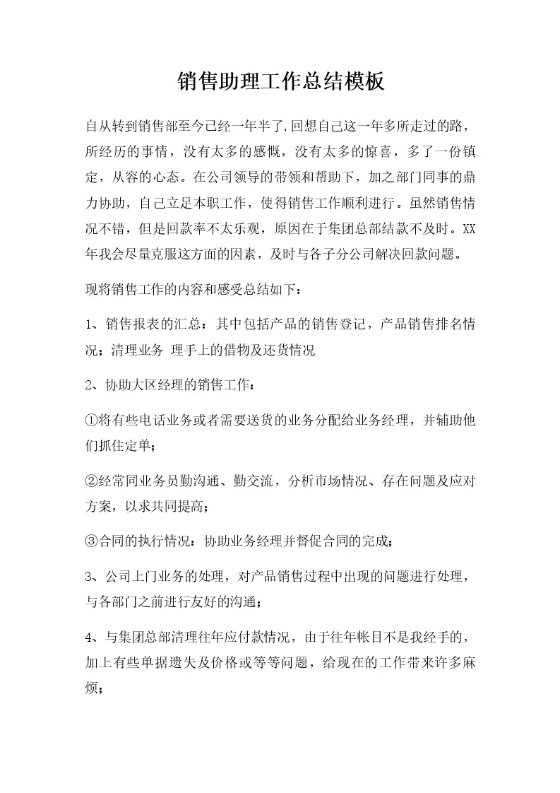 销售助理工作总结模板