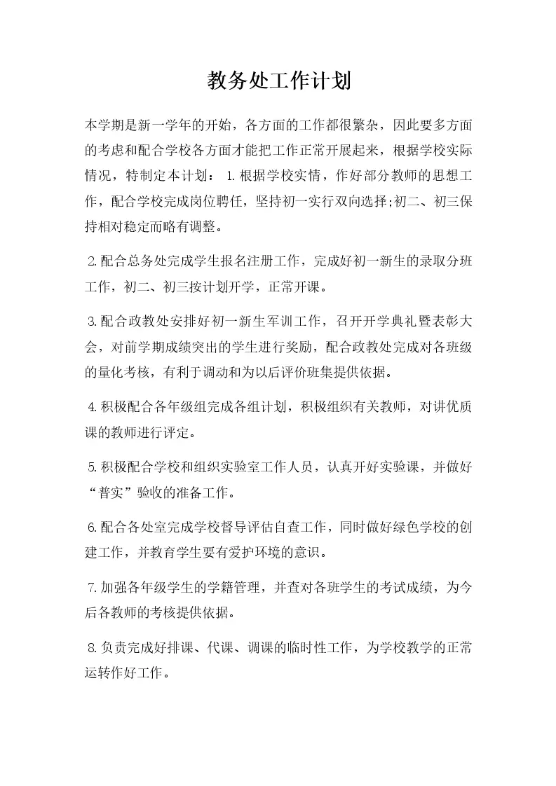 教务处工作计划