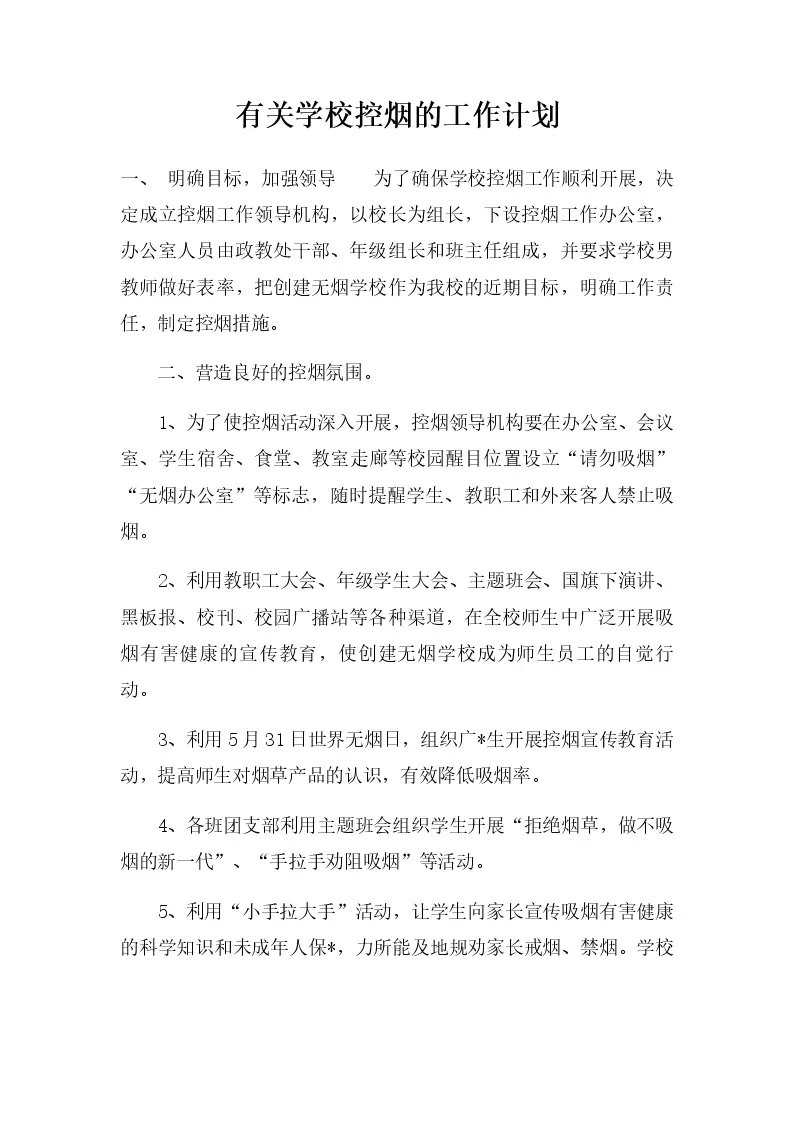 有关学校控烟的工作计划