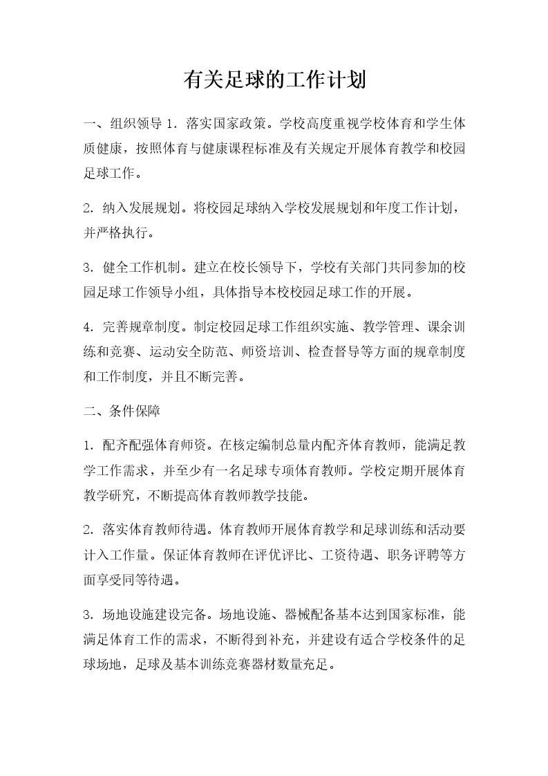 有关足球的工作计划