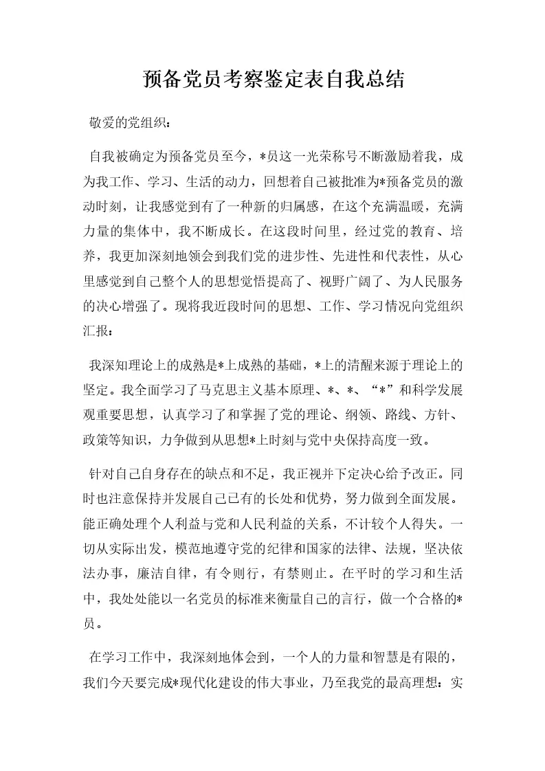 预备党员考察鉴定表自我总结