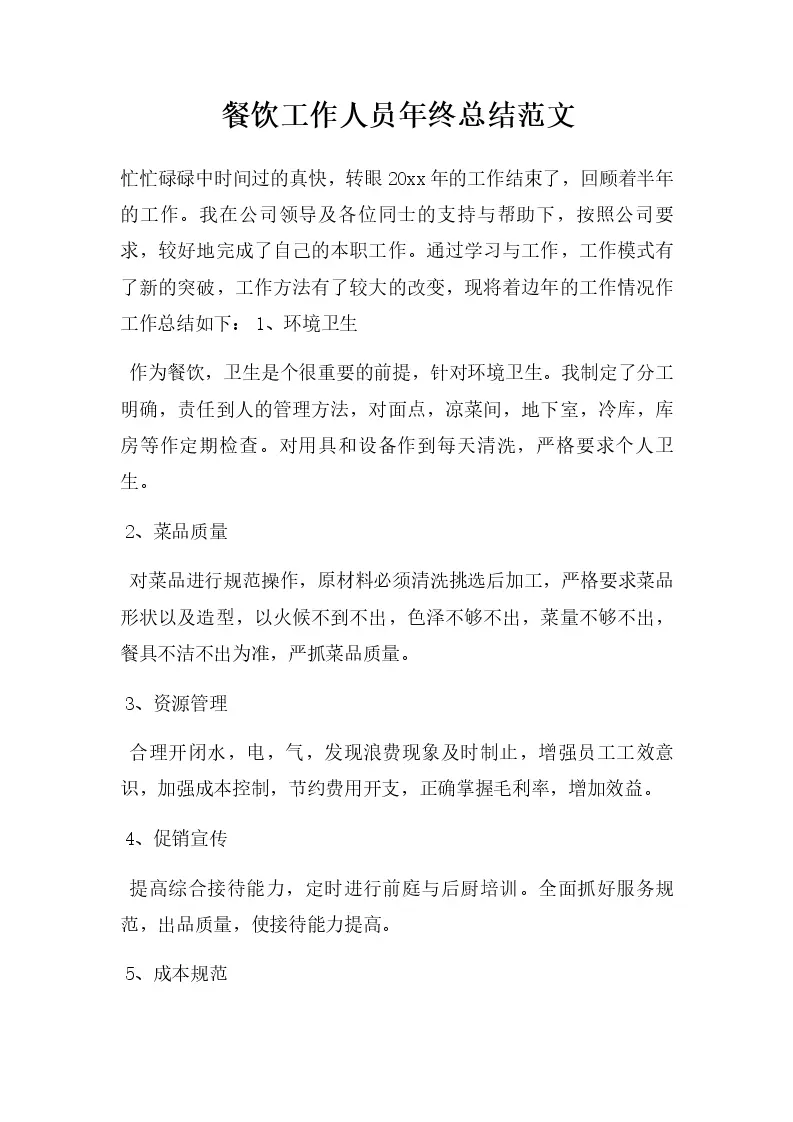 餐饮工作人员年终总结范文