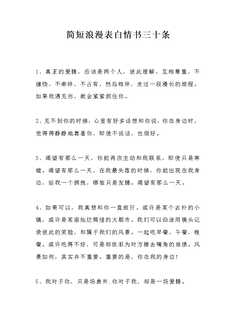 简短浪漫表白情书三十条