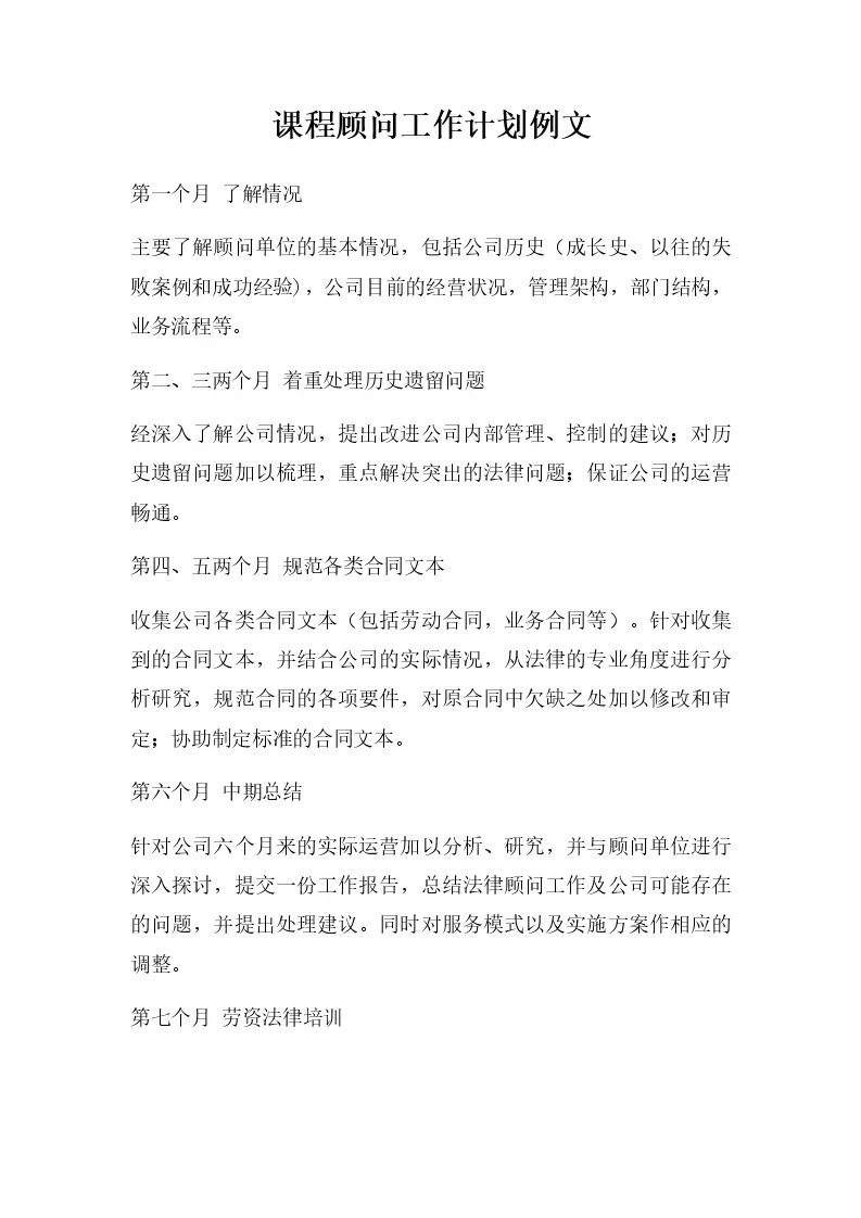 课程顾问工作计划例文