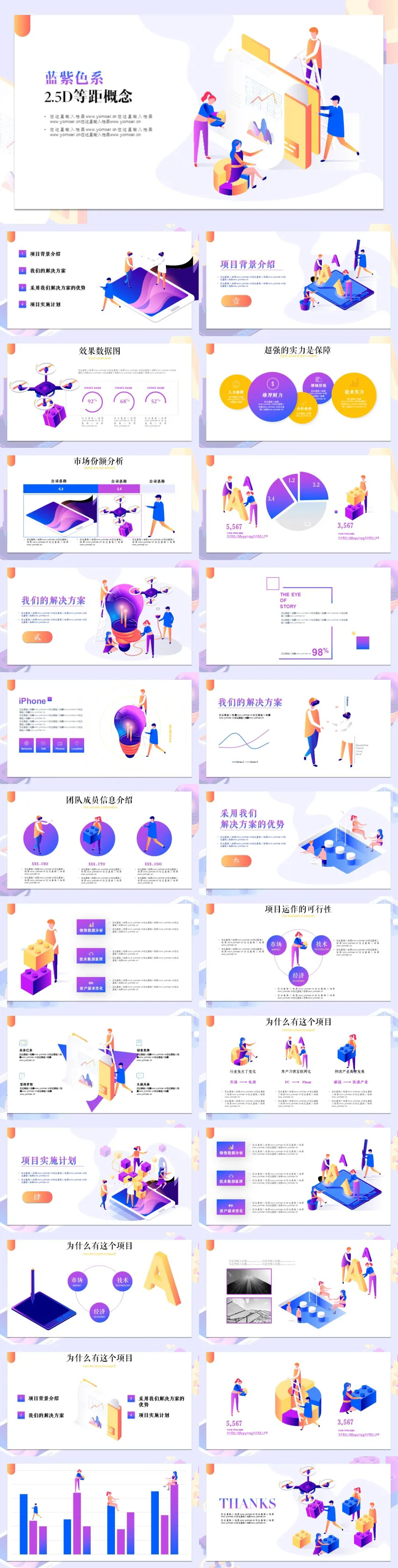 蓝紫色系2.5D等距概念PPT模板