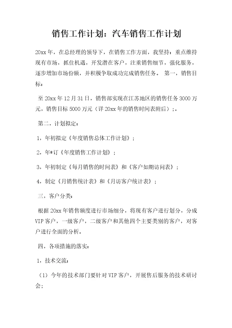 销售工作计划:汽车...