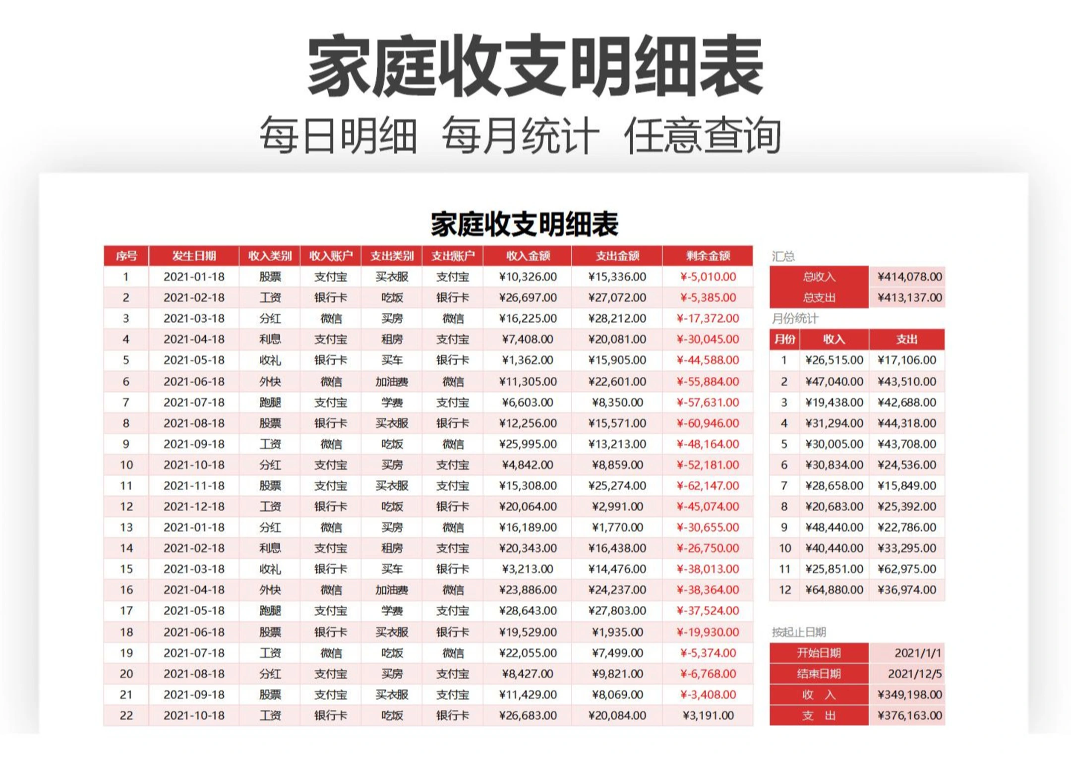 家庭收支明细表
