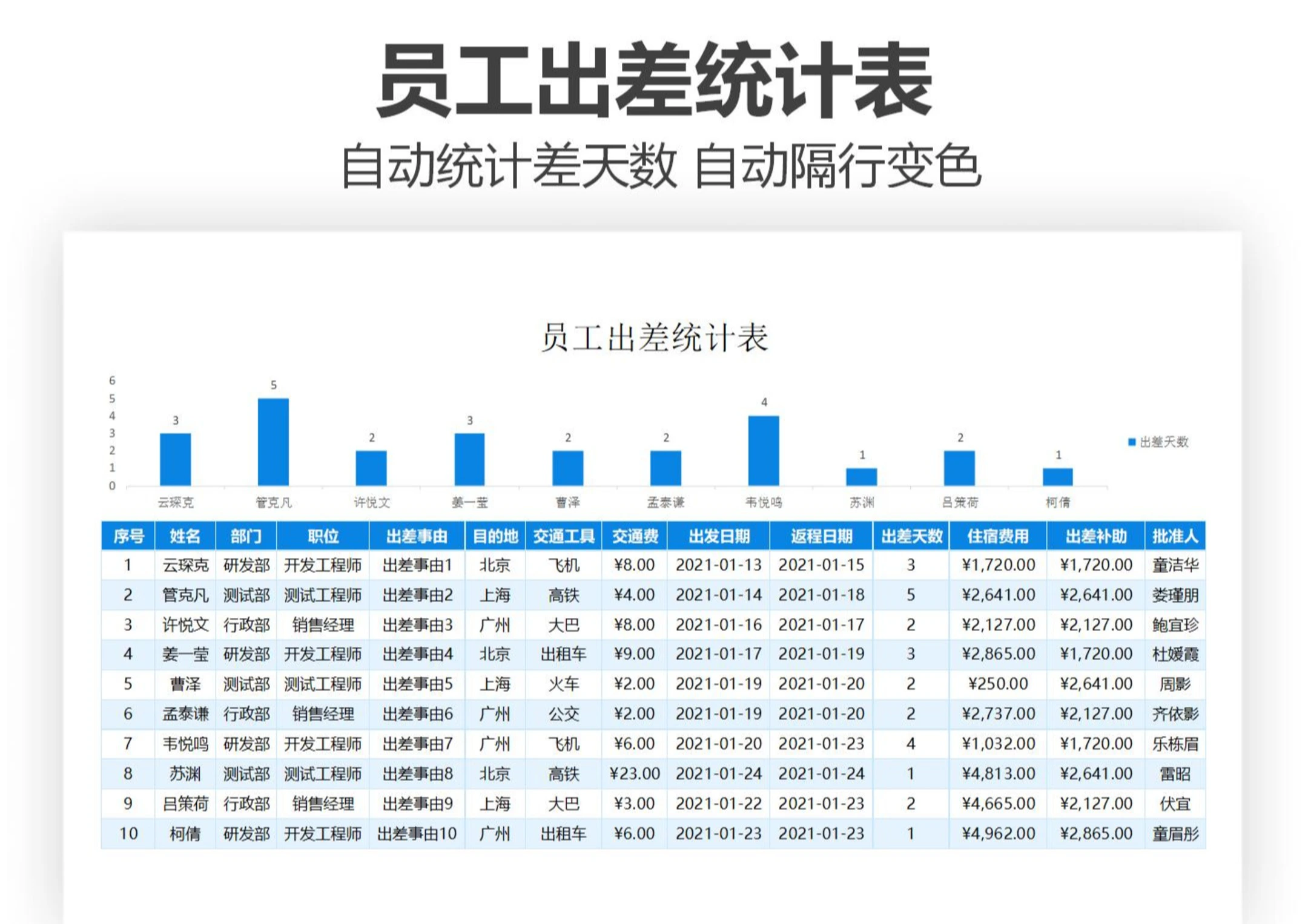 员工出差统计表