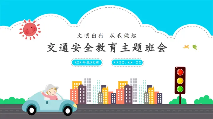文明出行从我做起交通安全教育主题班会PPT模板
