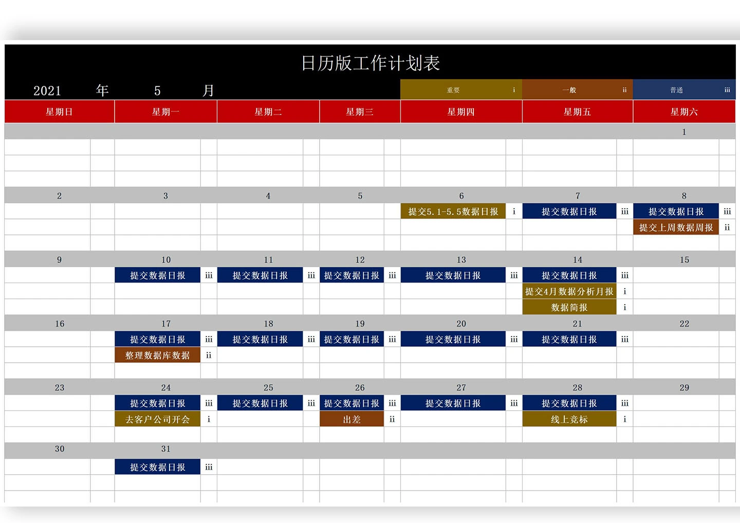 商务风日历版工作计划表Excel模板