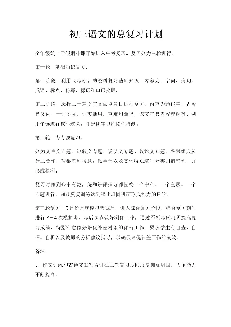 初三语文的总复习计划