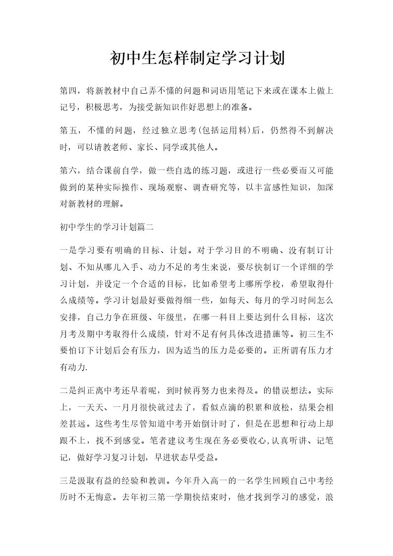 初中生怎样制定学习计划