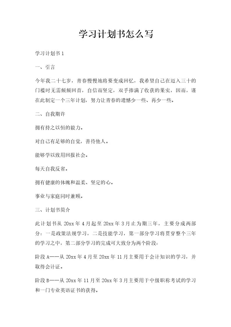 学习计划书怎么写