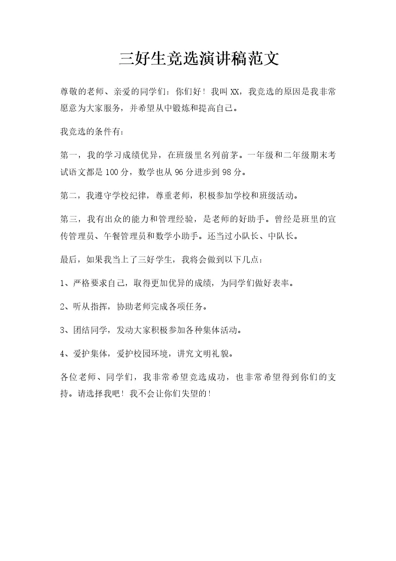 三好生竞选演讲稿范文