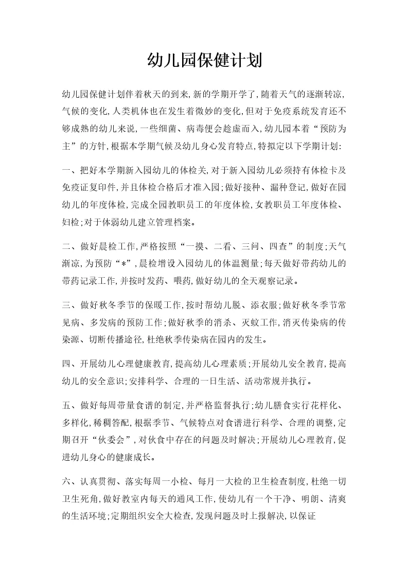 幼儿园保健计划