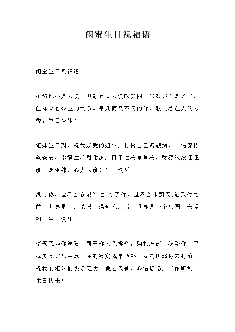 闺蜜生日祝福语