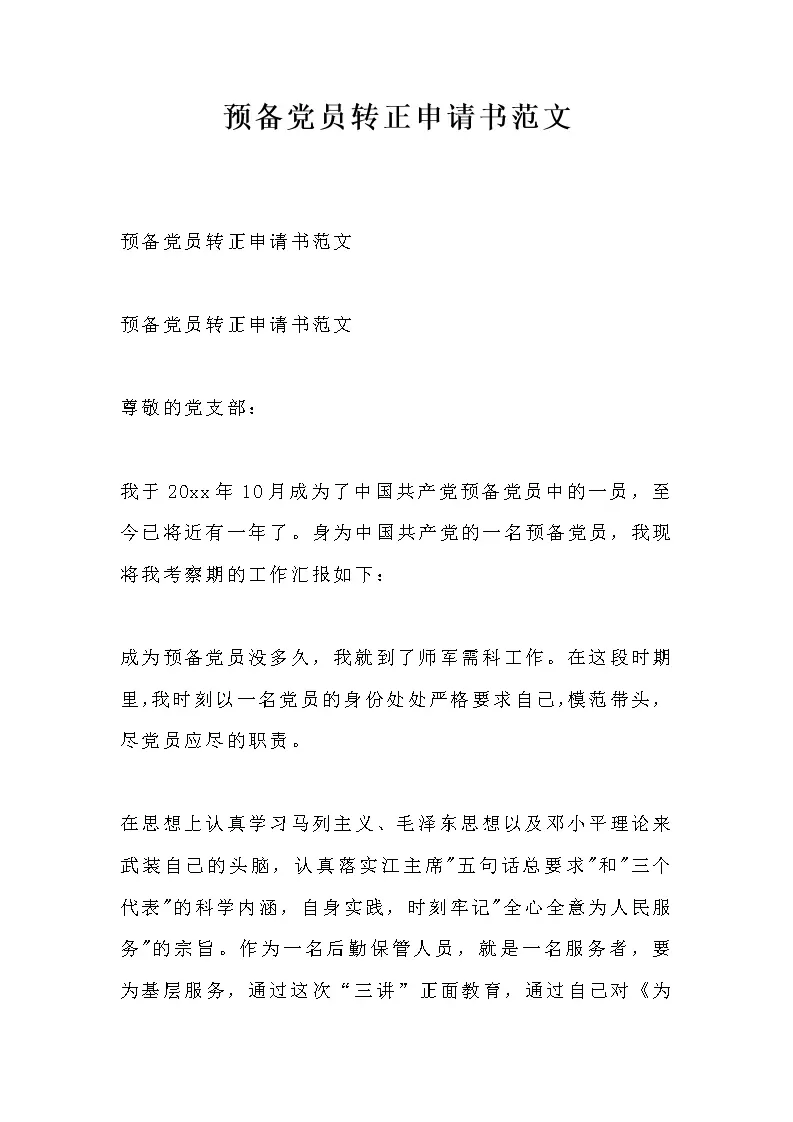 预备党员转正申请书范文_1