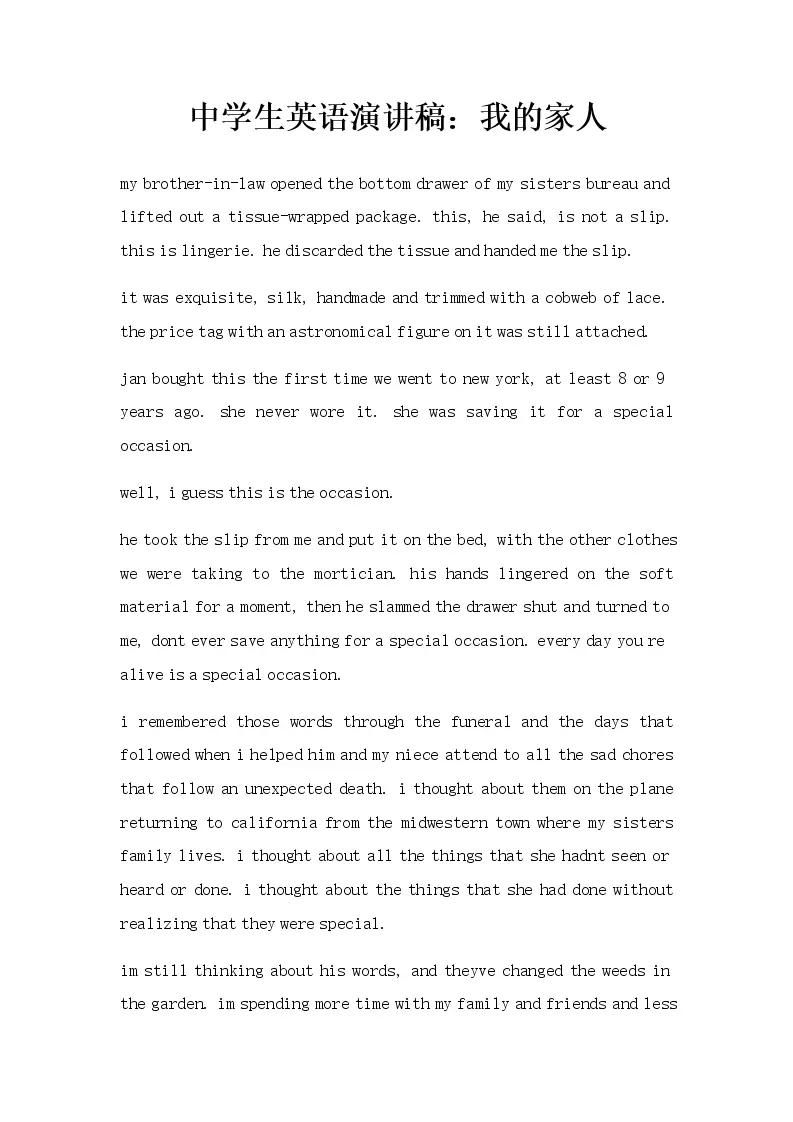 中学生英语演讲稿:我的家人