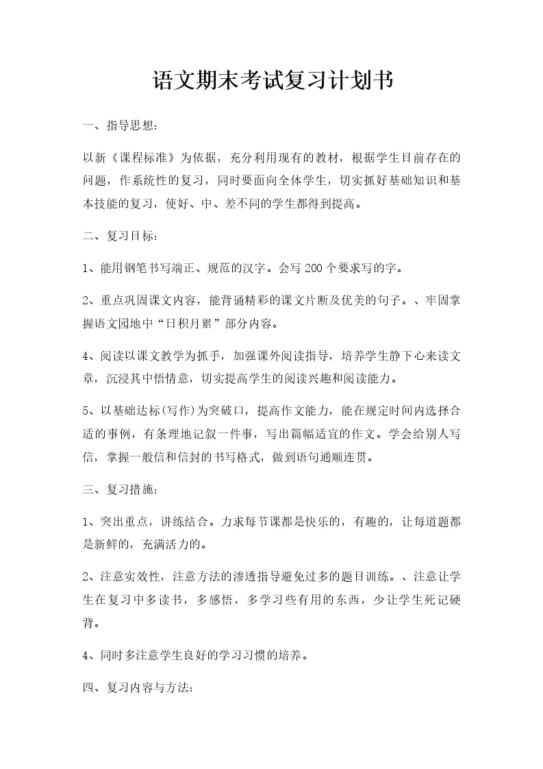 语文期末考试复习计划书