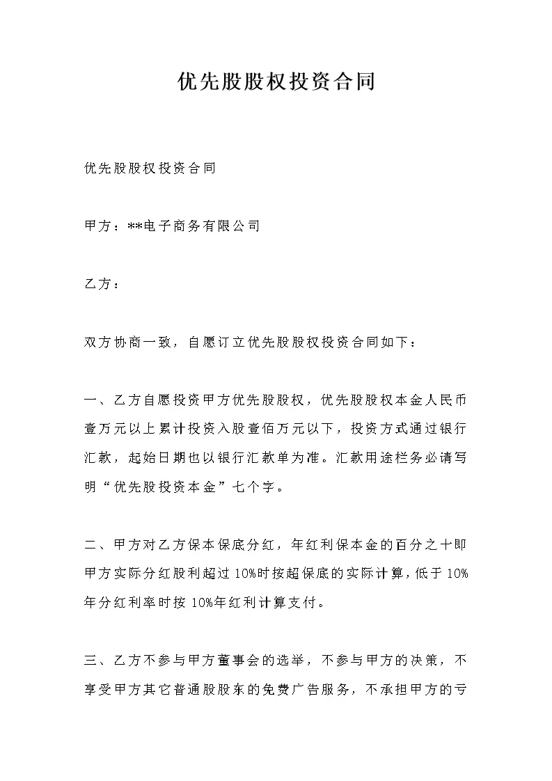 优先股股权投资合同