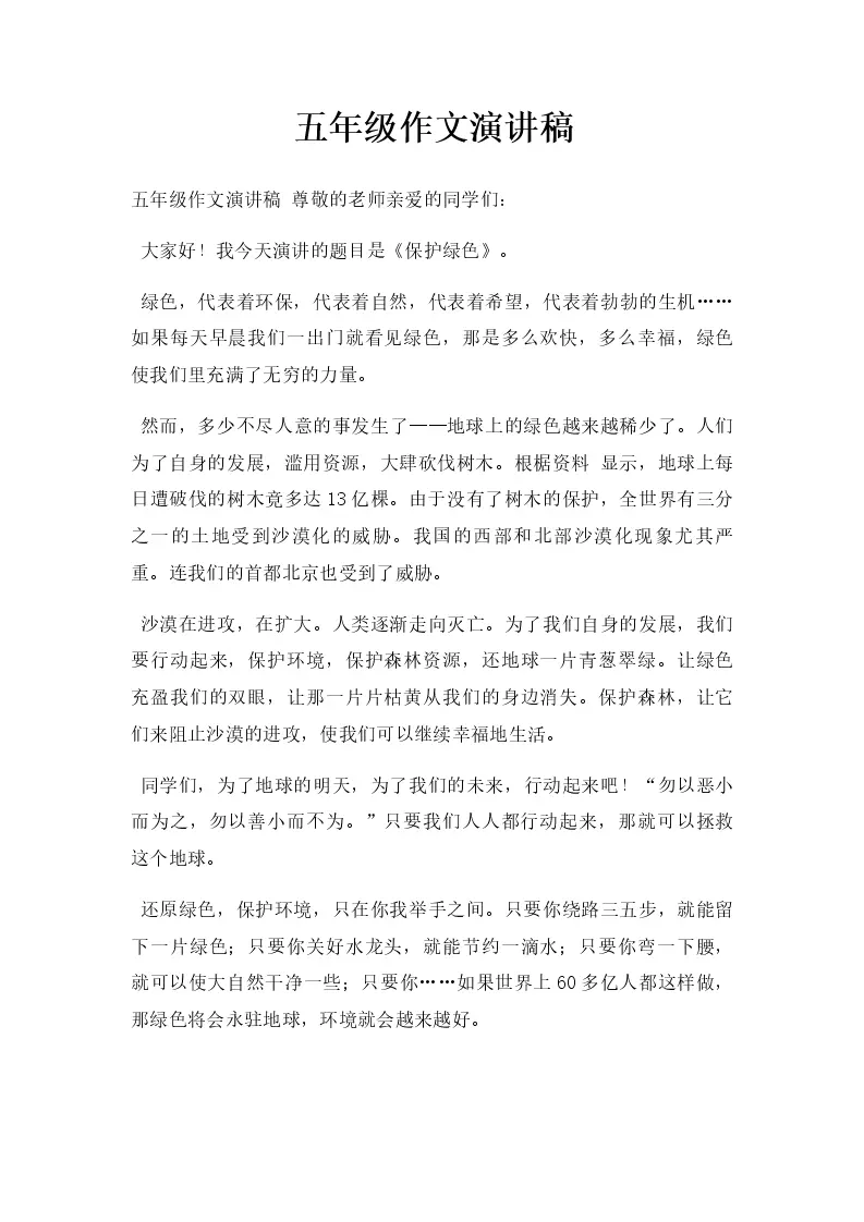 五年级作文演讲稿