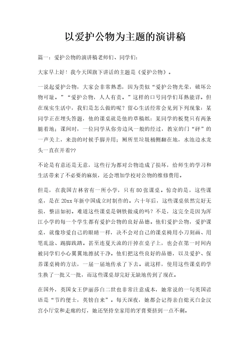 以爱护公物为主题的演讲稿