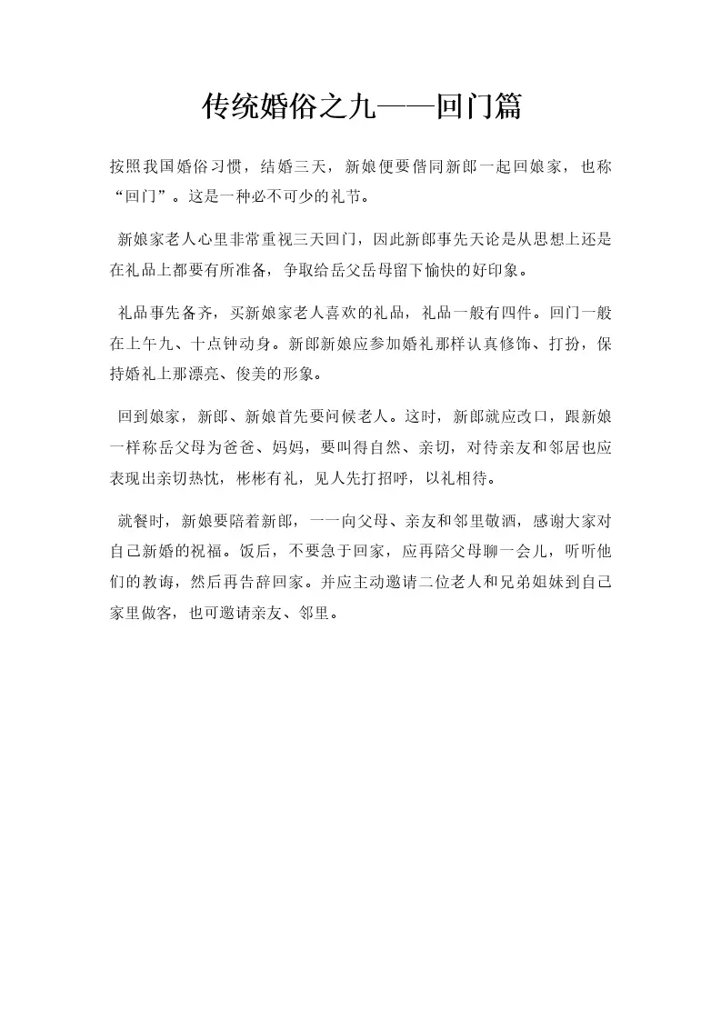传统婚俗之九——回门篇