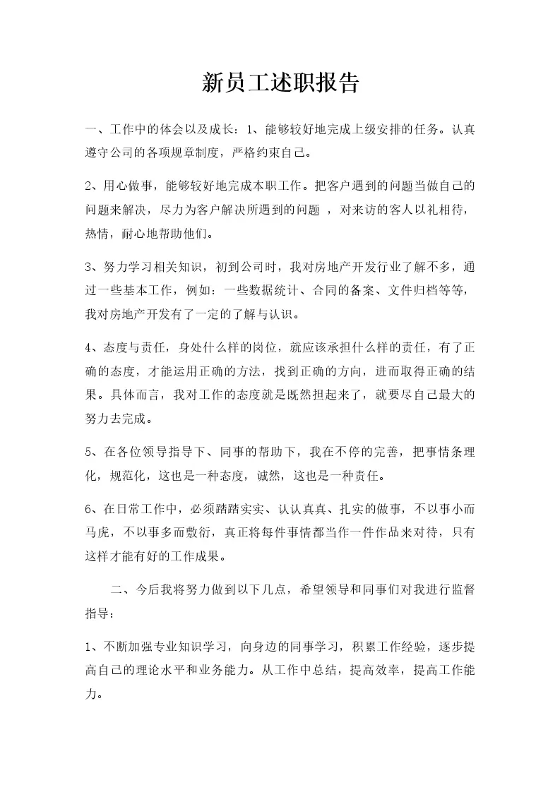 新员工述职报告