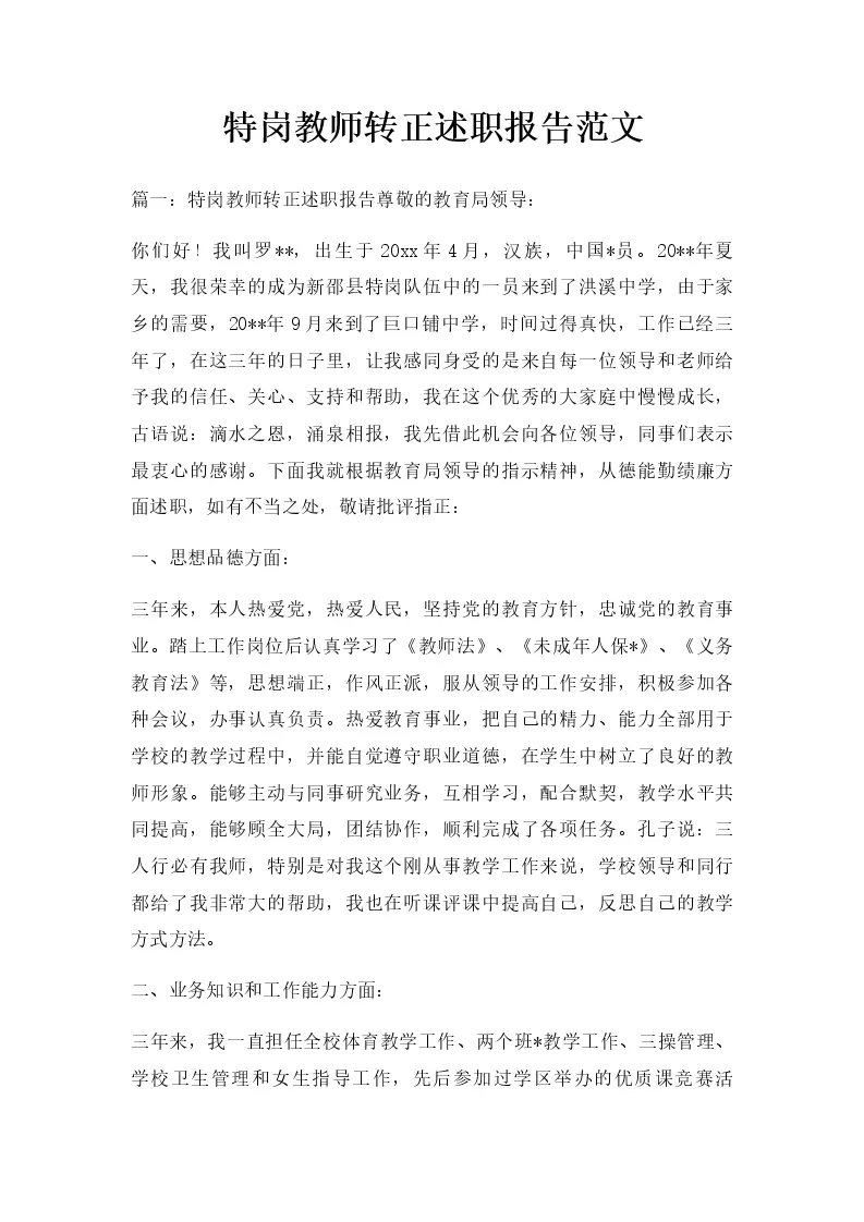 特岗教师转正述职报告范文