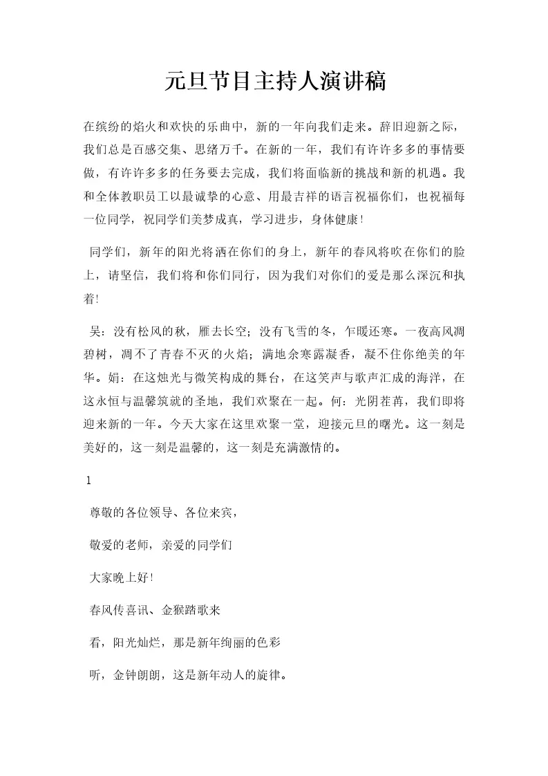 元旦节目主持人演讲稿