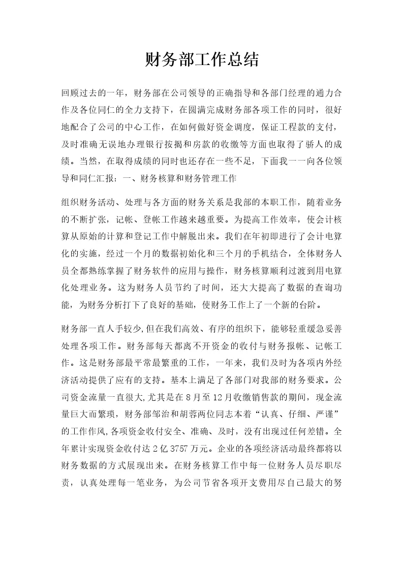 财务部工作总结