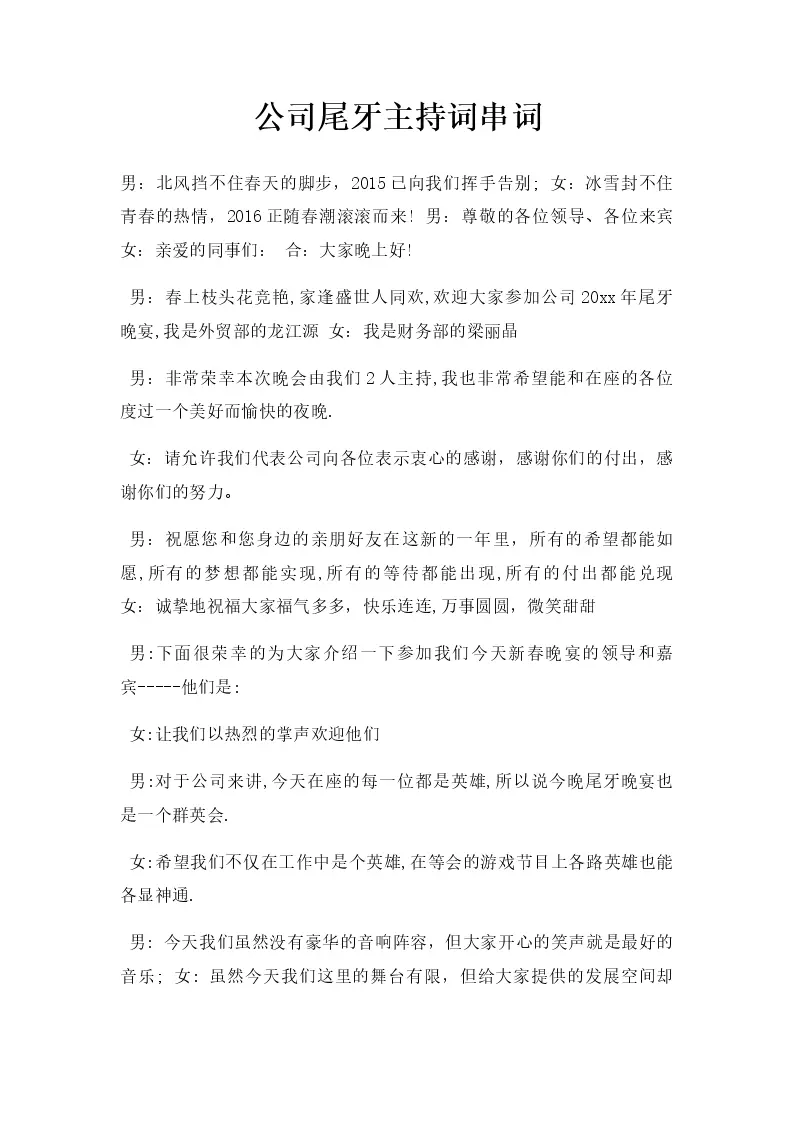 公司尾牙主持词串词