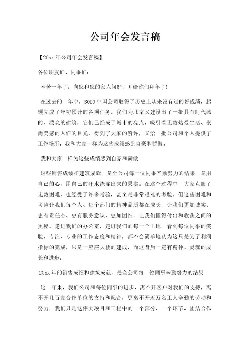 公司年会发言稿