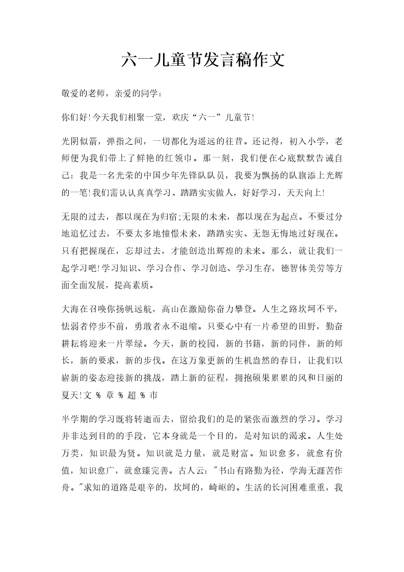 六一儿童节发言稿作文