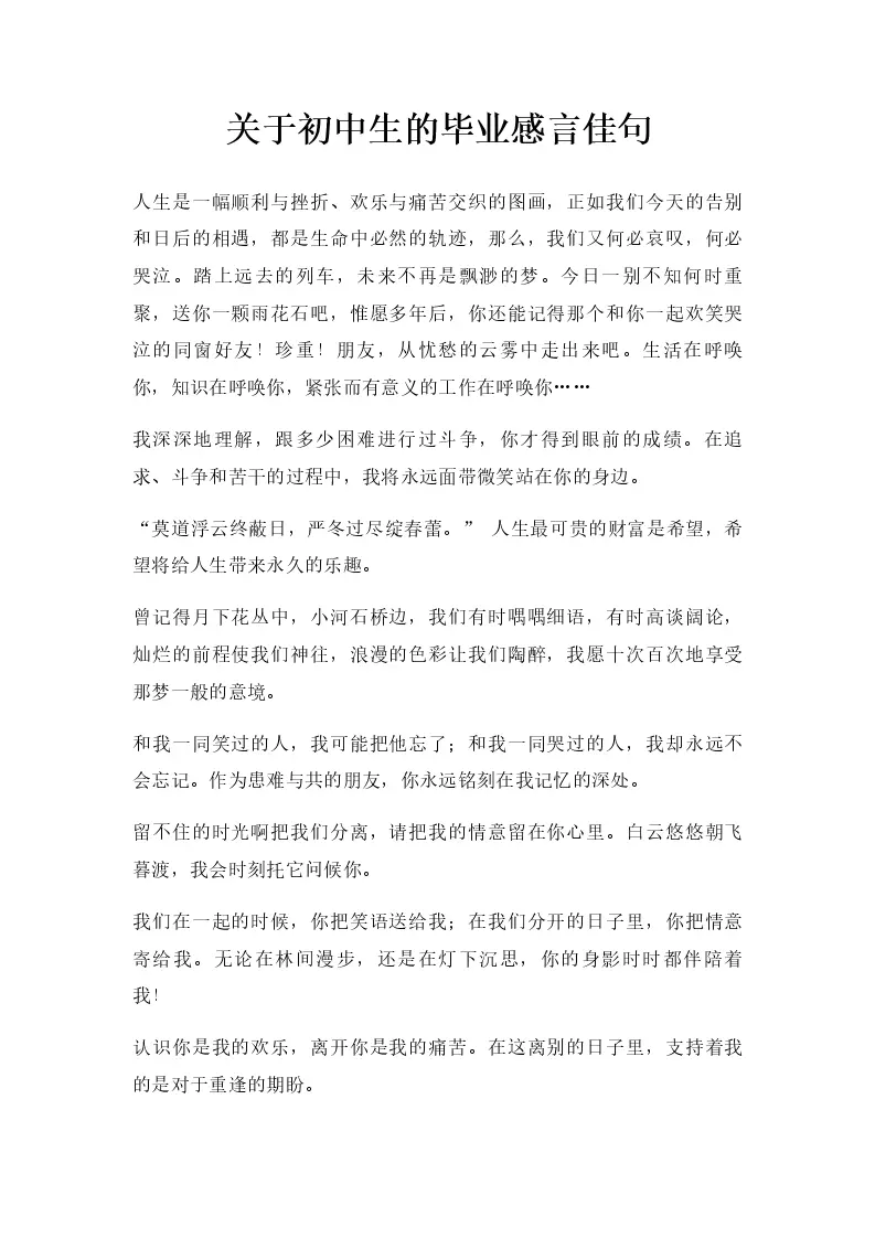 初中生的毕业感言佳句