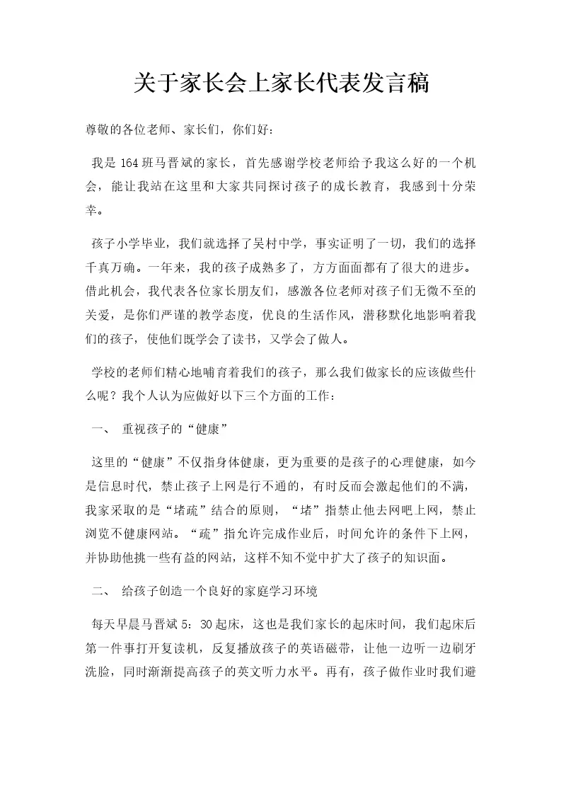 家长会上家长代表发言稿