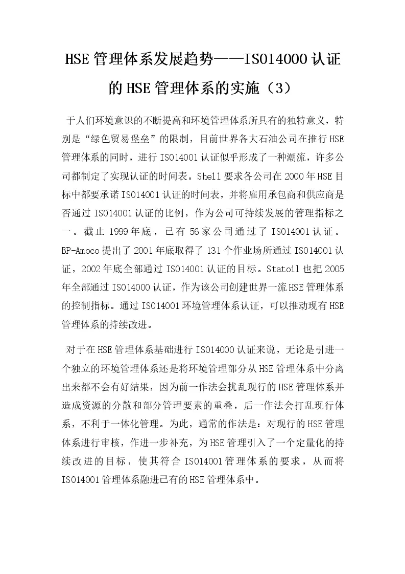 HSE管理体系发展趋势——ISO14000认证的HSE管理体系的实施(3)