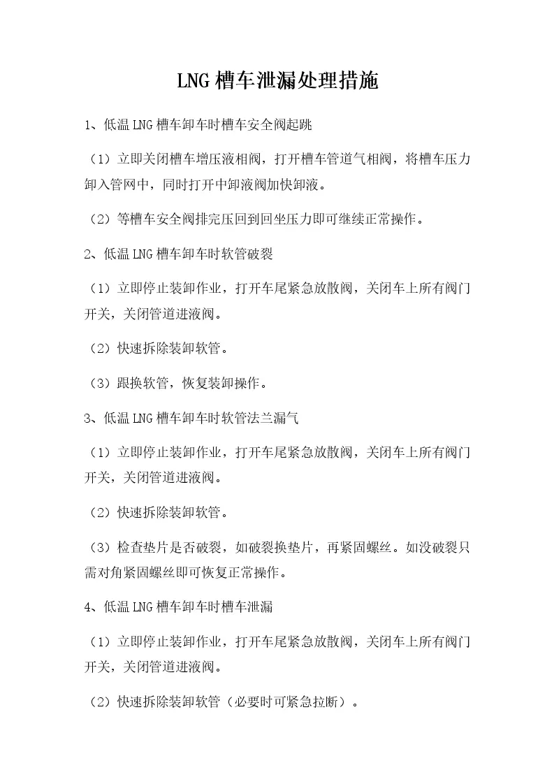 LNG槽车泄漏处理措施