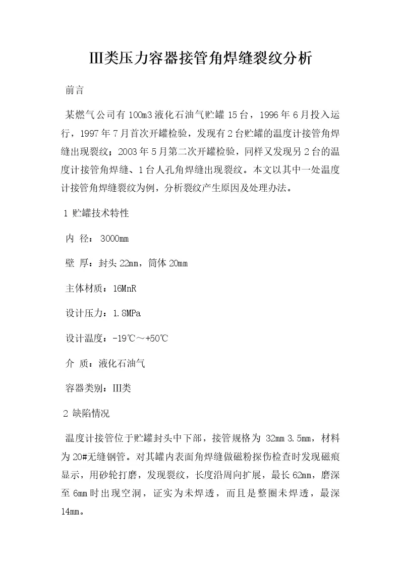 Ⅲ类压力容器接管角焊缝裂纹分析