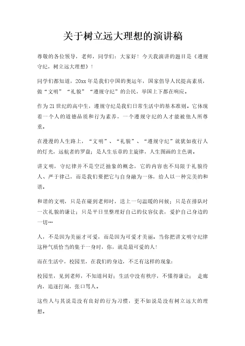 树立远大理想的演讲稿