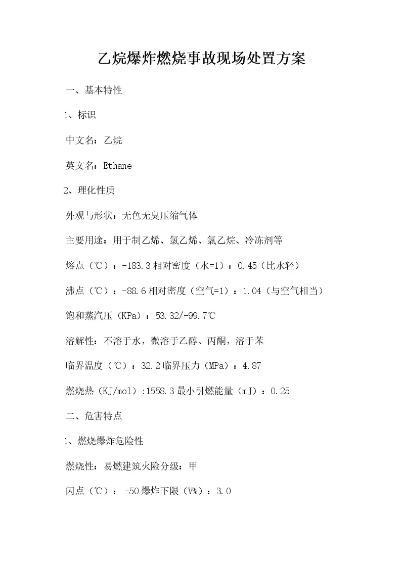 乙烷爆炸燃烧事故现场处置方案