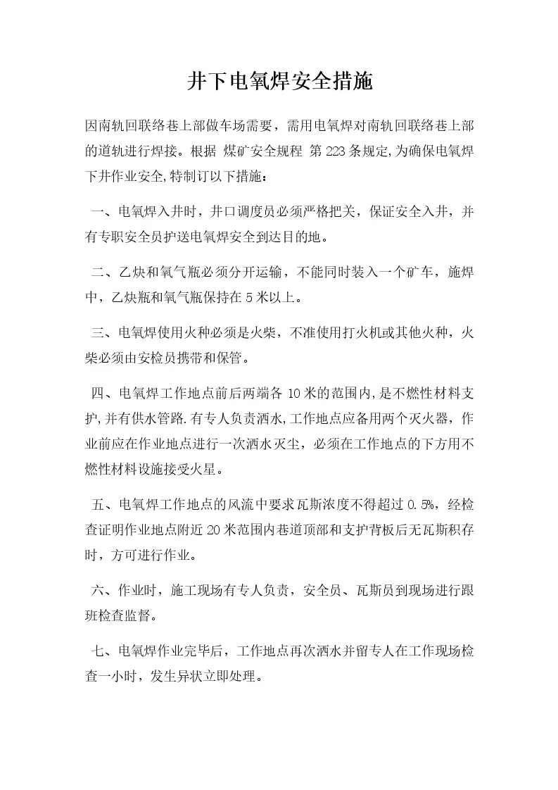 井下电氧焊安全措施