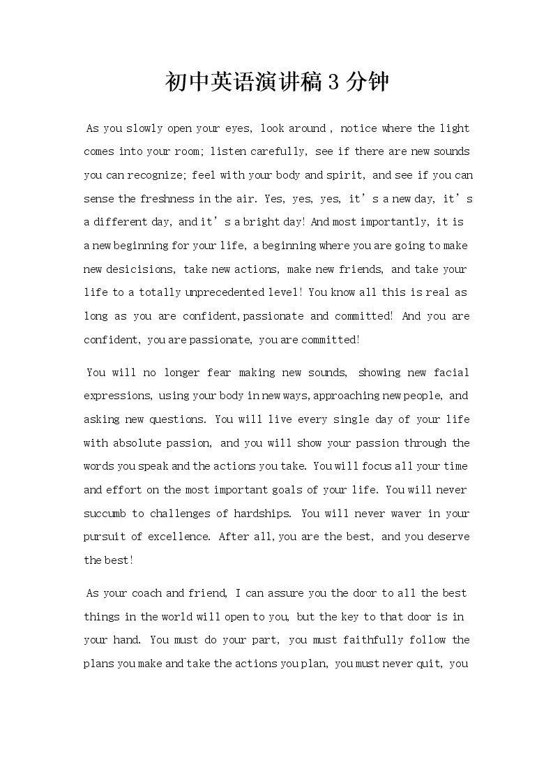 初中英语演讲稿3分钟