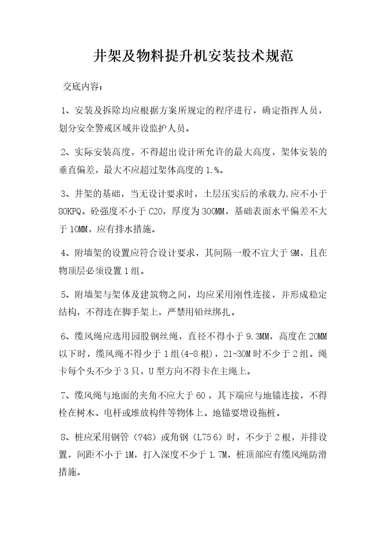 井架及物料提升机安装技术规范