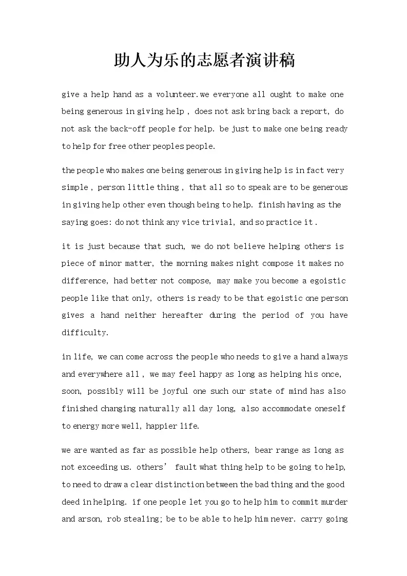 助人为乐的志愿者演讲稿