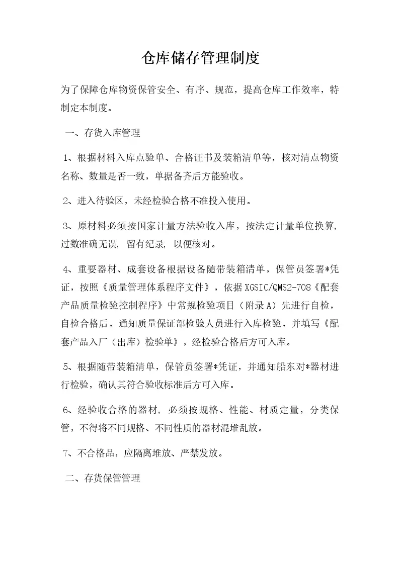 仓库储存管理制度