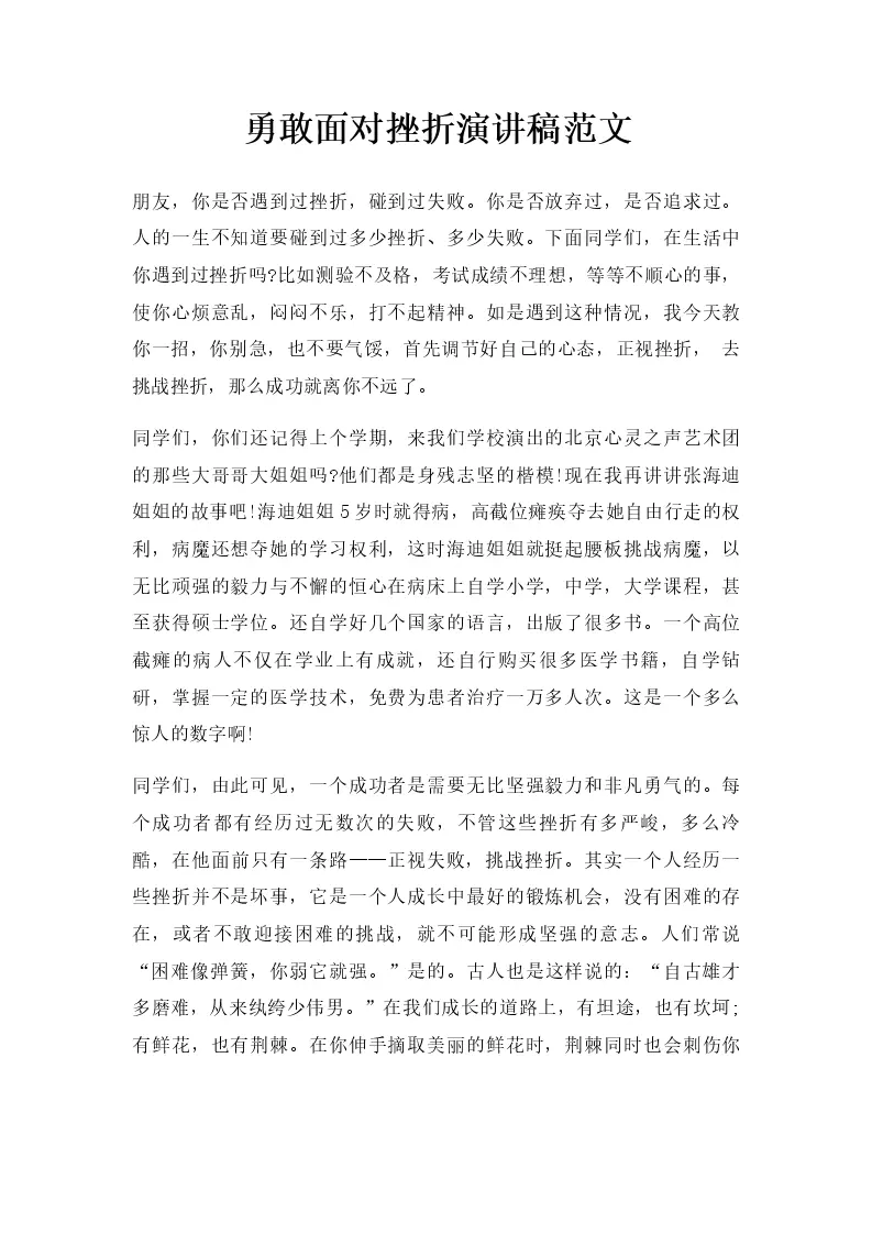 勇敢面对挫折演讲稿范文