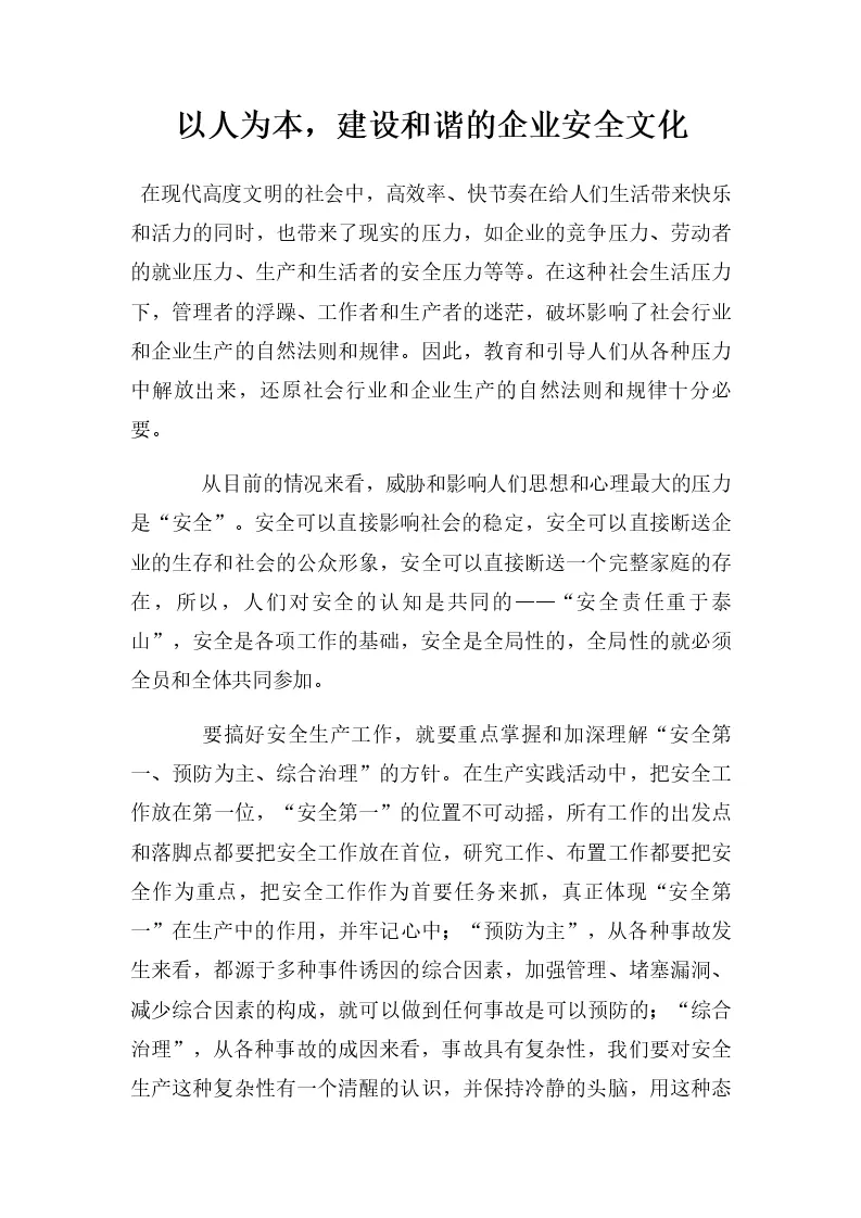 以人为本,建设和谐的企业安全文化